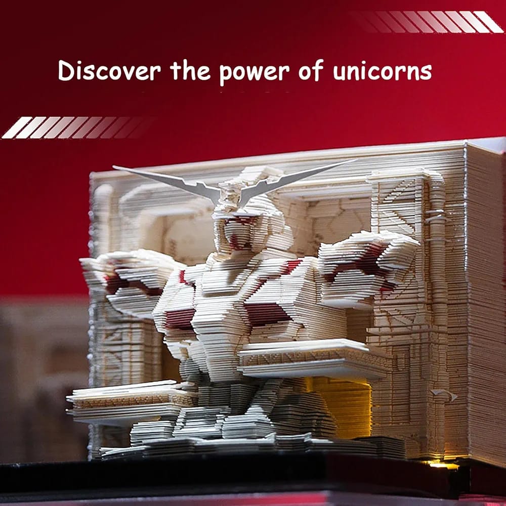 Unicorn Gundam surrounding 3D three-dimensional sticky note hand-torn paper sculpture 2025 calendar
